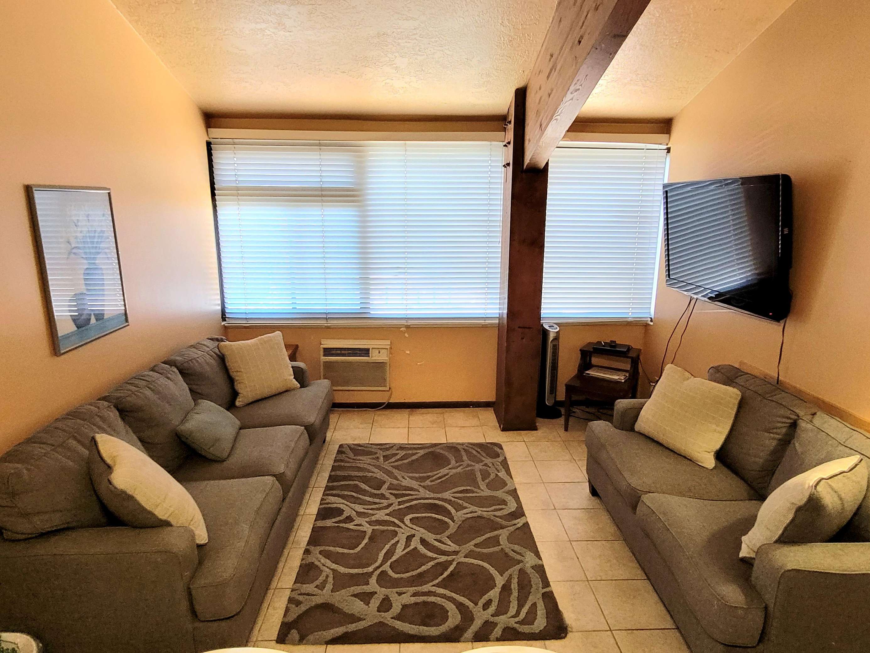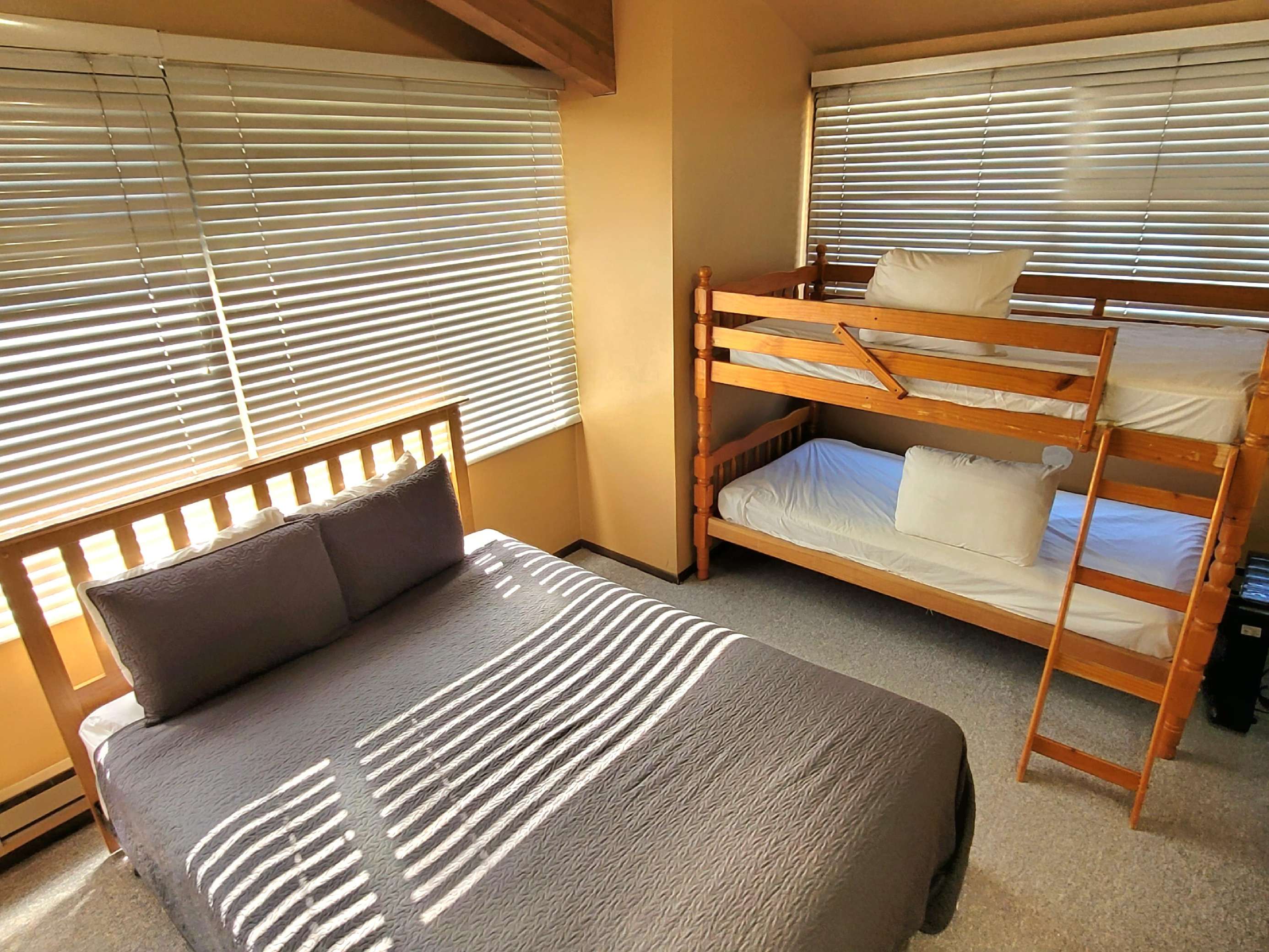 This 2 bedroom, 1 bathroom condo is perfect for families looking to enjoy Bear Lake's year-round activities. It sleeps up to 8 people and has two queen-sized beds, one set of twin bunk beds, and one sofa sleeper. This unit does not have air conditioning.